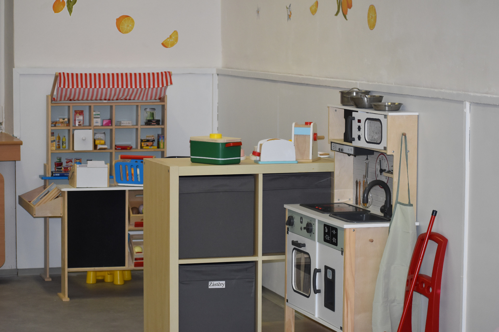 Pracujeme s týdenními bloky témat, jednotlivá témata zpracováváme za použití prvků z pedagogiky waldorfské a Montessori. Děti jsou rozděleny na oddělení Kuřátek, které je vhodné pro období adaptace a pro nejmladší děti, a oddělení Koťátek pro starší děti, které již odpovídá spíše mateřské škole, ovšem s výrazně větším počtem pečujících osob - tet (1 na 6 dětí oproti 1 - 2 na až 28 dětí v MŠ). V celém prostoru jsou přichystána centra aktivit, kde si mohou děti užívat individuální i skupinové činnosti různě zaměřené: centrum s akváriem a miniskleníky, centrum s kuchyňkou a obchodem, centrum s kosmetickým stolkem a kostýmovou skříní, centrum dílenské, centrum tvořivé a výtvarné, centrum smyslohrátkové a ve větší společné části pak hrací centra panenkové, dopravní a stavebnicové, centrum pohybové, centrum hudební a centrum čtenářské s písmenkovou komodou.