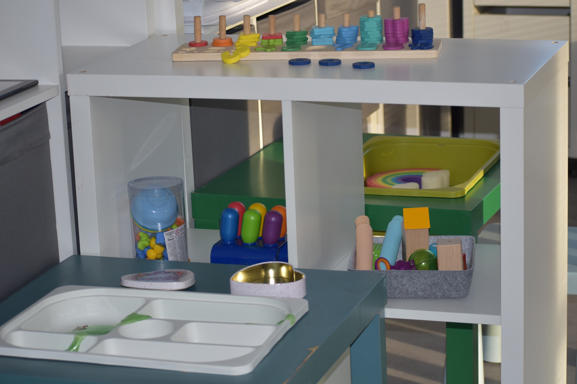 Vzhledem k tomu, že máme k dispozici speciální pedagogy, zaměřujeme se také na práci s dětmi se specifickým nadáním, hypersenzitivními dětmi a dětmi s vývojovou dysfázií a dalšími vadami řeči, dětem se také věnují speciální pedagogové Bc. Tereza Plačková, Bc. Klára Vedrová a Bc. Aneta Kajzarová. Děti mají možnost využít relaxační koutek, do budoucna plánujeme v objektu i zřízení Snoezelen místnosti, součástí denních aktivit je také smyslohraní s různými typy materiálů.